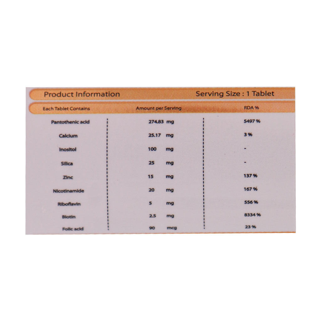 | ویتامین B7 | 2.5mg | 8334% |