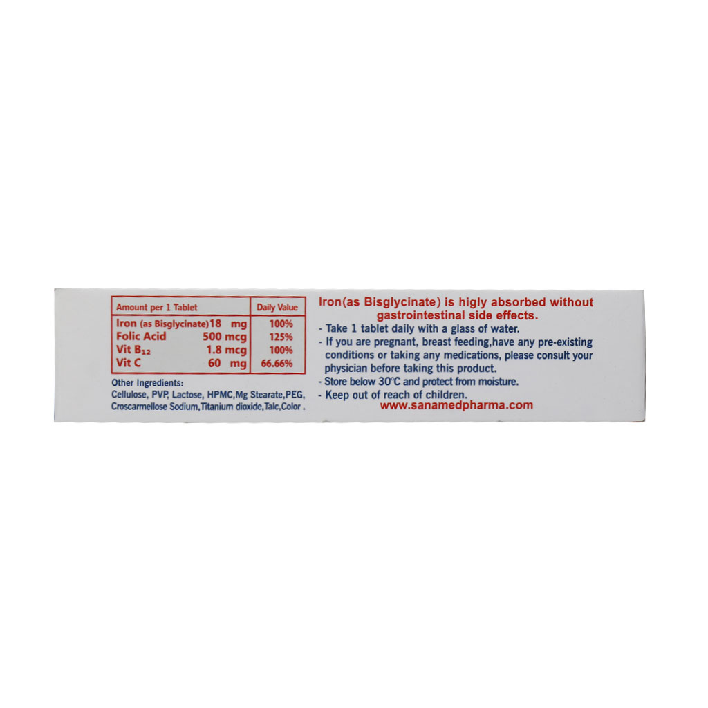 | آهن (به صورت بیس گلیسینات) | 18 میلی گرم | ** |