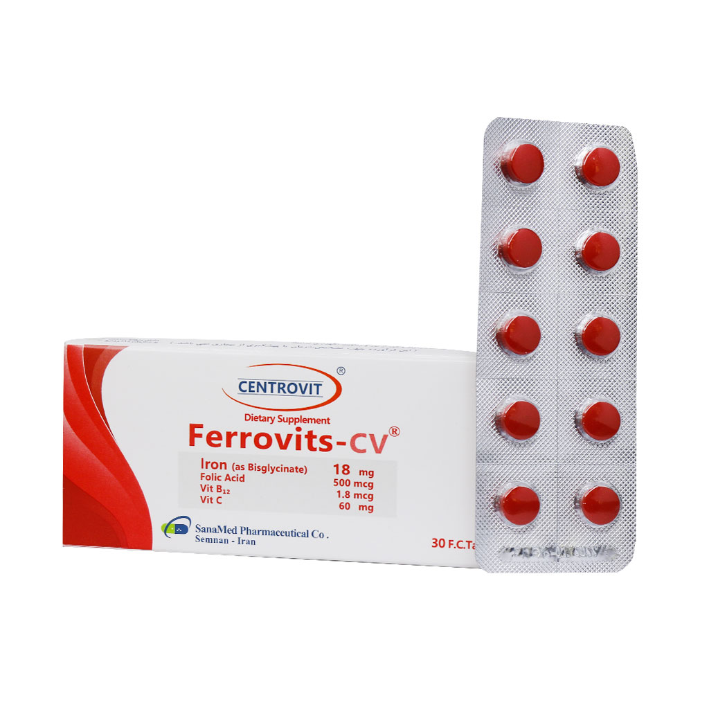 قرص روکش دار فروویتس سی وی سنتروویت با تامین آهن مورد نیاز بدن از کم خونی ناشی از فقر آهن جلوگیری میکند. ویتامین ث موجود در این محصول به جذب آهن کمک میکند.