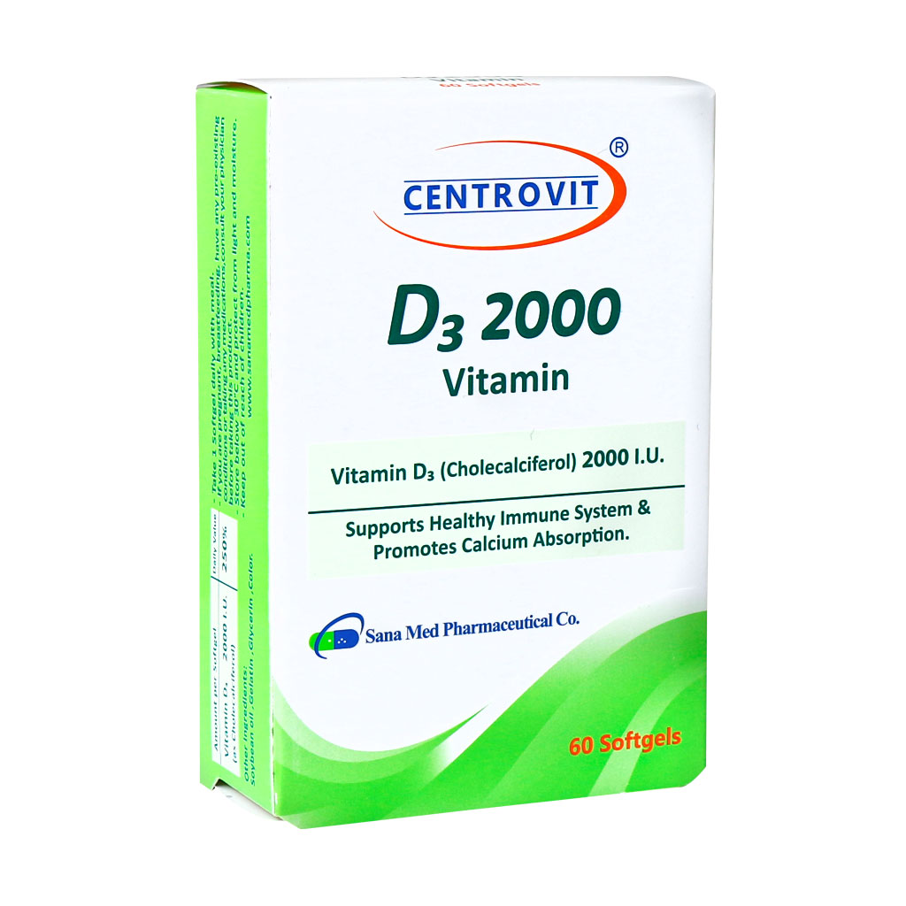 سافت ژل ویتامین D3 2000 سنتروویت مکملی غذایی برای کمک به سلامت سیستم ایمنی بدن و بهبود جذب کلسیم است.
