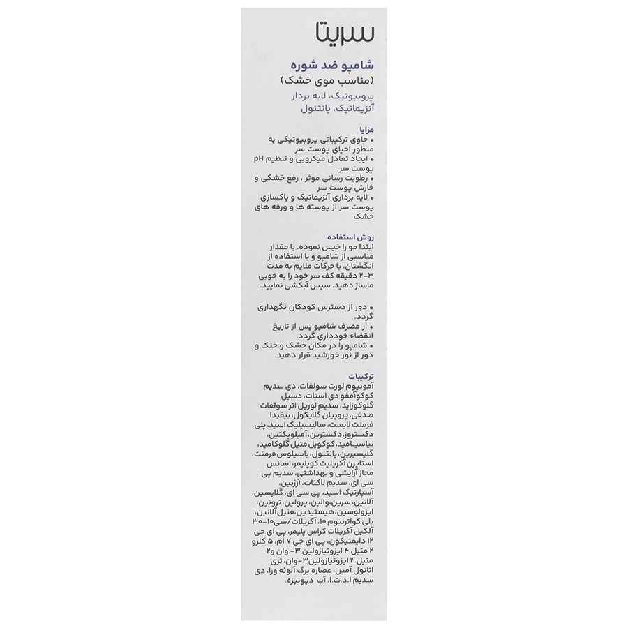 ترکیبات شامپو ضد شوره سریتا برای موهای خشک