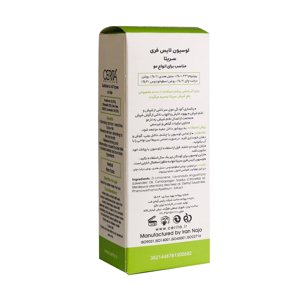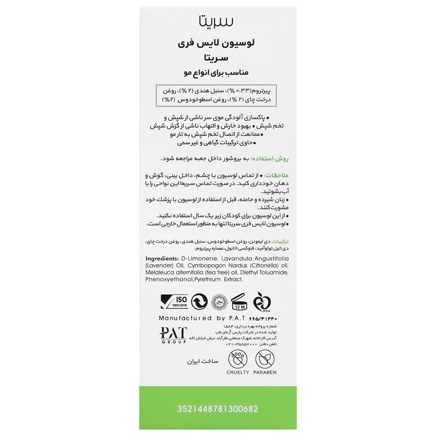 ویژگی های لوسیون ضد شپش لایس فری سریتا