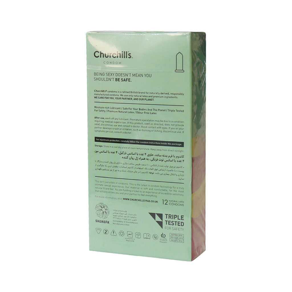 کاندوم میوه ای چرچیلز با فرم بدنه ساده 12 عدد