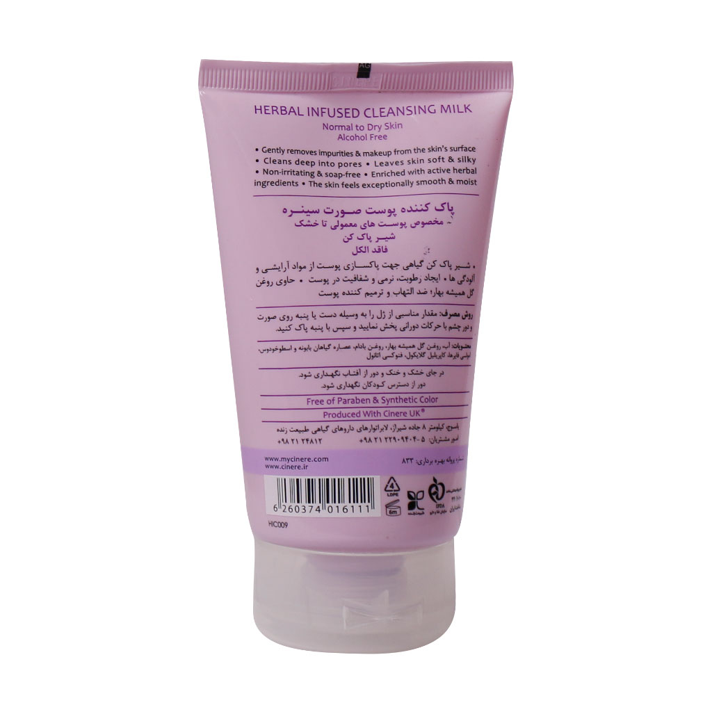 لوسیون پاک کننده صورت سینره مناسب برای پوست صورت و گردن می باشد. این پاک کننده بدون اینکه باعث خشکی پوست گردد، مواد زاید روی پوست را برداشته و باعث تمیزی پوست می شود. شستشوی صورت با صابون، چربی پوست را از بین برده و باعث خشکی و کشیدگی بر روی پوست می شود. این محصول حاوی مواد روغنی است. که این مواد باعث ایجاد یک لایه نازک چربی جهت حفاظت از پوست می گردد.