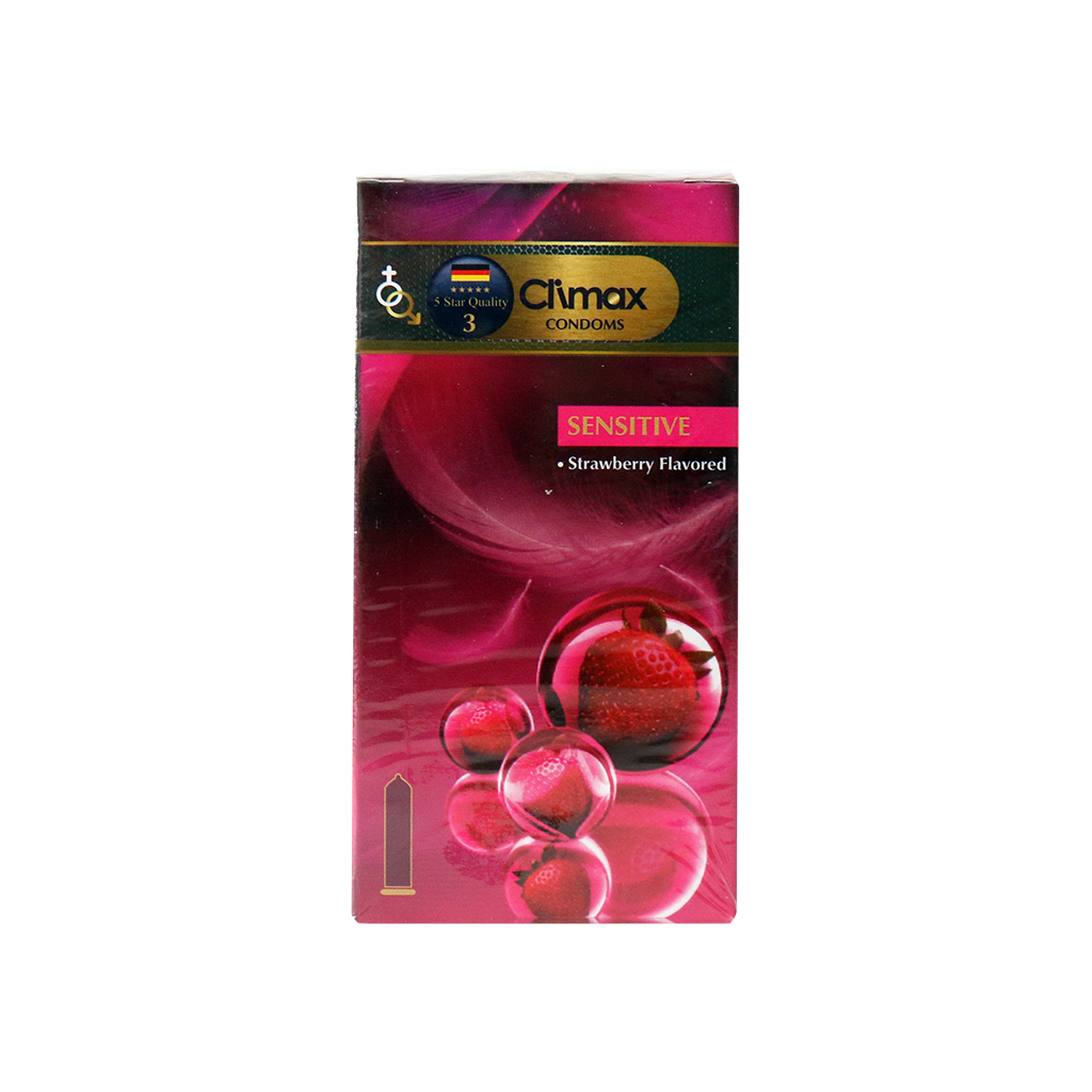کاندوم ساده کلایمکس مدل Sensitive محصولی ساده با رایحه توت فرنگی است که حاوی مواد روانکننده می باشد. در قسمت نوک این محصول مخزن ذخیره برای نگهداری ا س پ ر م جهت اطمینان و امنیت بیشتر طراحی شده است.