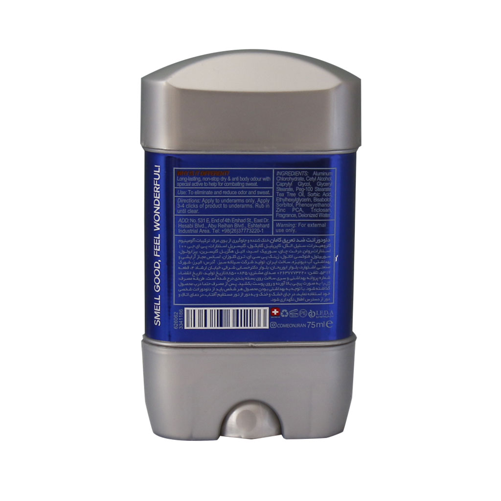 ژل دئودورانت خنک کننده مردانه کامان فاقد مواد مضر از بوی بد عرق جلوگیری کرده و با رطوبت رسانی بالا و جذب سریع رایحه خوشی را برای شما بر جای میگذارد.