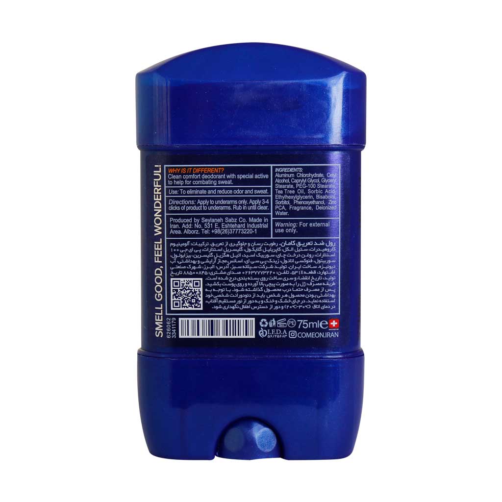 ژل دئودورانت ضد حساسیت مردانه کامان حاوی آلومینیوم و SLS نبوده و حتی افرادی که پوستهای حساس دارند نیز میتوانند از آن استفاده کنند. این محصول مخصوص آقایان فرموله شده و برای انواع مختلف پوست مناسب است. رایحه خوش این محصول سبب میشود تا راغب شوید از آن به طور مرتب استفاده نمایید. این محصول علاوه بر بوی دلپذیر خاصیت رطوبتدهندگی بالایی دارد و از خشک شدن پوست جلوگیری میکند. رول ضد تعریق با از بین بردن باکتریهای سطح پوست مانع از ایجاد بوی بد میشود. عرق کردن به خودی خود چیز بدی نیست و اتفاقا برای بدن مفید نیز هست. اما گاهی بوی تعریق بدن آنقدر ناخوشایند است که باید با استفاده از یک محصول مناسب به کاهش آن کمک کرد. در این مواقع، لزوم استفاده از دئودورانت و دیگر محصولات ضد تعریق بیش از همیشه حس خواهد شد. روغن درخت چای یکی از ترکیبات موثر موجود در دئودرانت استیکی کامان است.