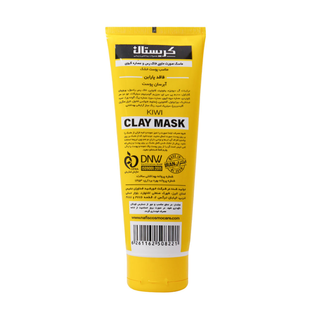 ماسک صورت آبرسان پوست خشک کریستال حاوی عصاره کیوی و خاک رس است. همانطور که میدانید استفاده منظم از ماسکهای صورت باعث تمیز شدن منافذ شده و فرآیند پیری پوست را به تاخیر میاندازد. این محصولات سلولهای مرده موجود در سطح پوست را از بین برده و پوست را نرم و لطیف میکند. ماسک صورت آبرسان حاوی عصاره کیوی کریستال نیز از خشک شدن پوست جلوگیری کرده و رطوبت مورد نیاز سلولهای پوستی را تامین میکند. استفاده از این ماسک صورت به افراد دارای پوست خشک توصیه میشود. چراکه ماسک صورت آبرسان کریستال با ایجاد یک لایه محافظ از تبخیر رطوبت موجود در بافت پوست جلوگیری کرده و مانع از دهیدراته شدن پوست صورت میشود.