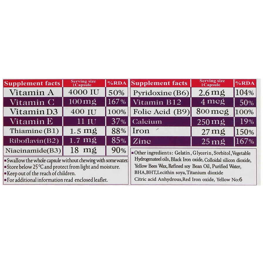 - حاوی انواع ویتامینها و املاح معدنی مورد نیاز برای دوران بارداری و شیردهی