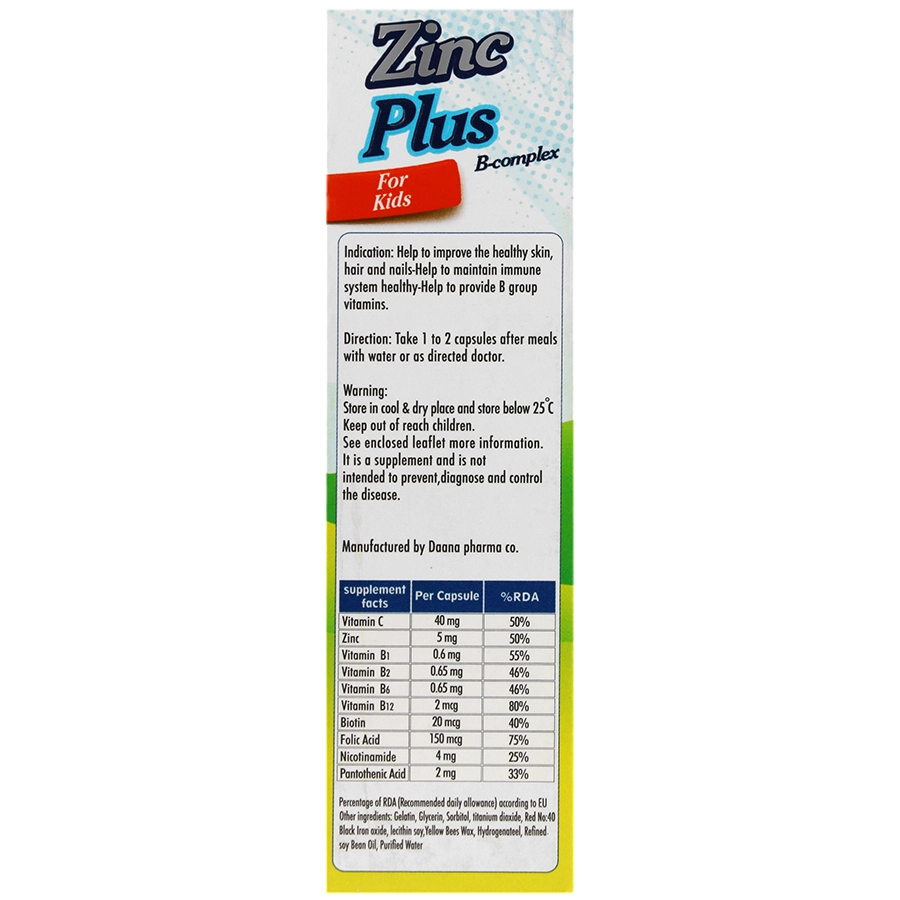 کپسول زینک پلاس ب-کمپلکس مخصوص کودکان و نوجوانان دانا علاوه بر تقویت رشد ذهنی و جسمی، به حفظ سلامت پوست، مو و ناخن و همچنین تقویت سیستم ایمنی و عمومی بدن کمک زیادی میکند.
