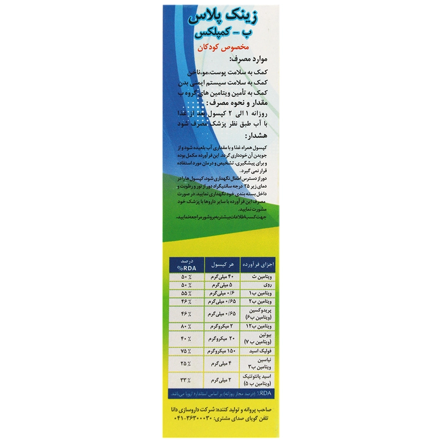 کپسول زینک پلاس ب کمپلکس مناسب کودکان و نوجوانان دانا ۶۰ عددی