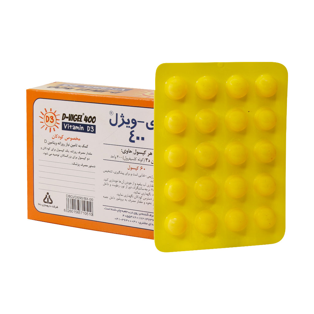 کپسول دی ویژل 400 دانا به عنوان مکمل رژیمی غذایی جهت تامین نیاز روزانه و رفع کمبود ویتامین D مصرف میشود. گفتنی است ویتامین د از دسته ویتامینهای محلول در چربی است که برای افزایش جذب کلسیم و فسفر از روده کوچک و تشکیل بافت استخوان ضروری است. کوله کلسیفرول (ویتامین D3) همراه با دو هورمون پاراتورمون و کلسی تونین غلظت سمی کلسیم را تنظیم میکند. به همین علت مصرف این قرص ویتامین D موجب تقویت و رشد استخوان و دندان کودکان میشود.