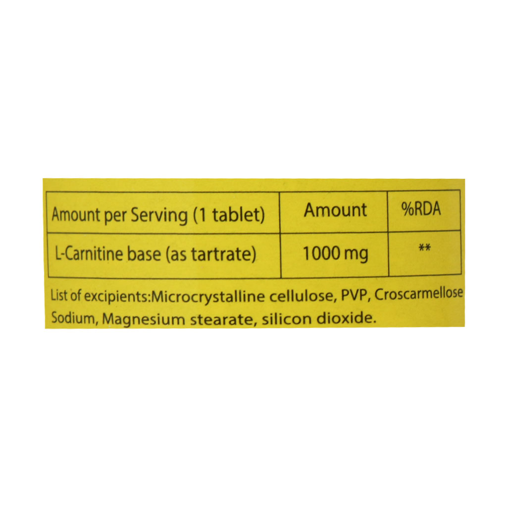 - هر قرص حاوی 1000 میلی گرم ال کارنیتین تارتارات