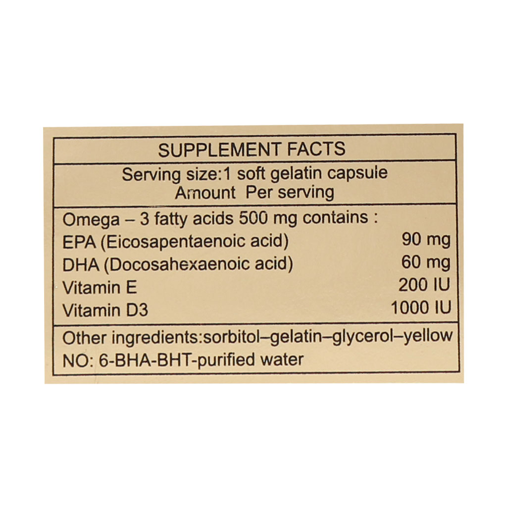 ویژگی های سافت ژل امگا 3 500 میلی گرم پلاس ویتامین D3 و ویتامین E دانا