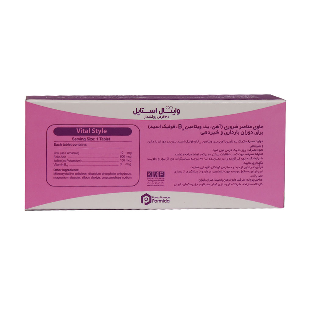 قرص وایتال استایل دارو درمان پارمیدا با تامین ویتامین و مواد مغذی مورد نیاز بانوان باردار و شیرده به سلامت مادر و کودک کمک موثری میکند.