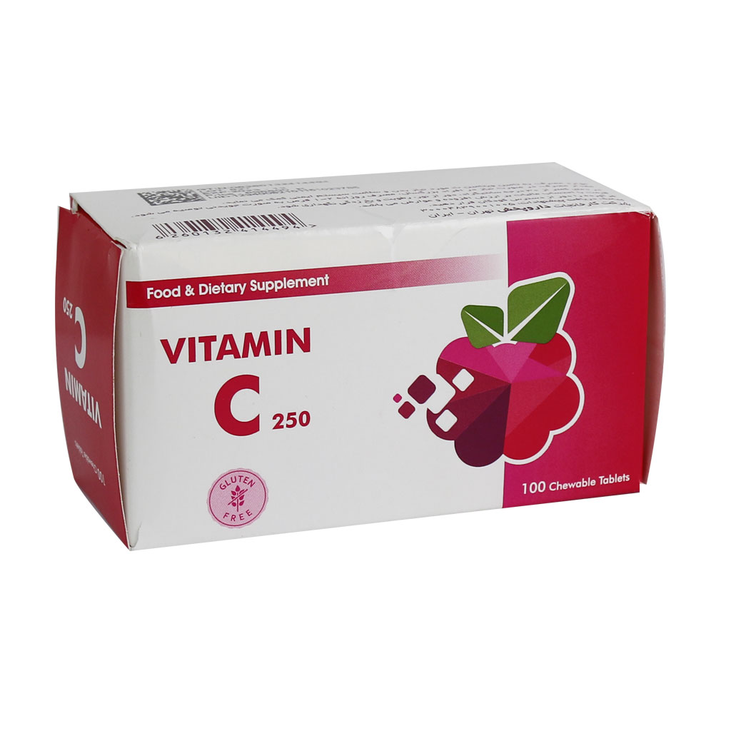 قرص جویدنی ویتامین C 250 میلی گرم دارو پخش حاوی مقدار متوسطی از ویتامین ث است. این قرص در پیشگیری و درمان اسکوروی به عنوان آنتی اکسیدان در فرمولاسیون فرآورده‌های دارویی و صنایع غذایی، همراه با دفروکسامین در درمان تالاسمی و در فقر آهن به منظور افزایش جذب گوارشی آهن و نیز برای اسیدی کردن ادرار به کار می‌رود. همچنین این ویتامین به تامین ویتامین ث مورد نیاز بدن و سلامت سیستم ایمنی کمک می‌کند.