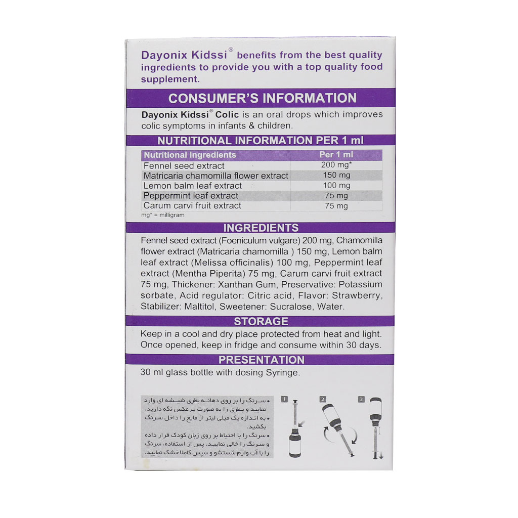 ویژگی های قطره کیدزی کولیک دایونیکس فارما