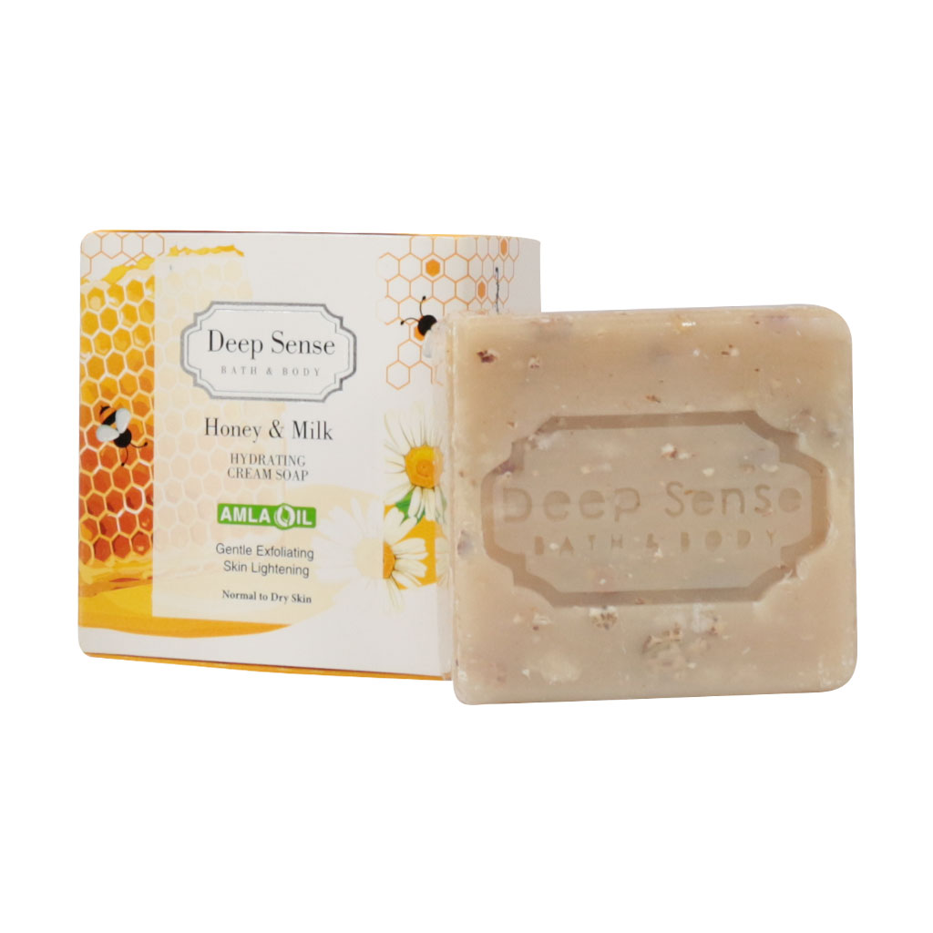 صابون کرمی آبرسان شیر و عسل دیپ سنس سی گل مناسب پوست نرمال تا خشک صورت و بدن است. این محصول حاوی عصاره عسل، پروتئین شیر، پودر جو دو سر و روغنهای بادام و آملا است. پودر جو دو سر موجود در این صابون، با ایجاد یک لایه محافظ از تبخیر رطوبت سلولهای پوستی جلوگیری نموده و مانع از خشک شدن بافت پوست میشود. روغن بادام نیز سرشار از ویتامین E بوده و اثرات مخرب رادیکالهای آزاد بر پوست را از بین میبرد.