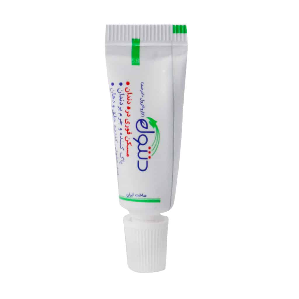 درد دندان: با سوزن درب تیوب را سوراخ نمایید. مقدار کمی پنبه روی خلال گذاشته و به دنتول آغشته نموده و در حفره ناشی از پوسیدگی فروکنید. پس از یک دقیقه درد کاملا از بین رفته و پس از یک ساعت، عفونت، ورم و التهاب فروکش می‌نماید. برای معالجه به دندانپزشک رجوع کنید.