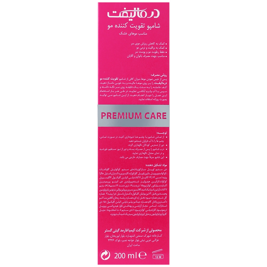 شامپو تقویت کننده موی خشک و آسیب دیده درمالیفت ۲۰۰ میلی لیتر