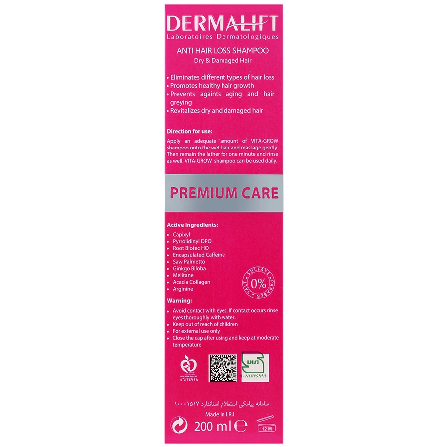 شناسه محصول: dermalift-vita-grow-anti-hair-loss-shampoo-for-dry-damaged-hair-200-ml