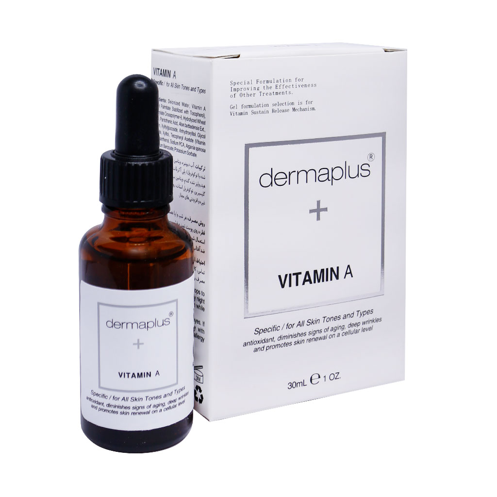 ژل مرطوب کننده پوست ویتامین A درماپلاس علاوه بر مرطوب کردن سلول‌های پوستی، خاصیت ارتجاعی پوست را بهبود داده و باعث کاهش چروک‌ها می‌شود. استفاده از این محصول سبب افزایش تولید کلاژن و رفع علائم پیری می‌شود.
