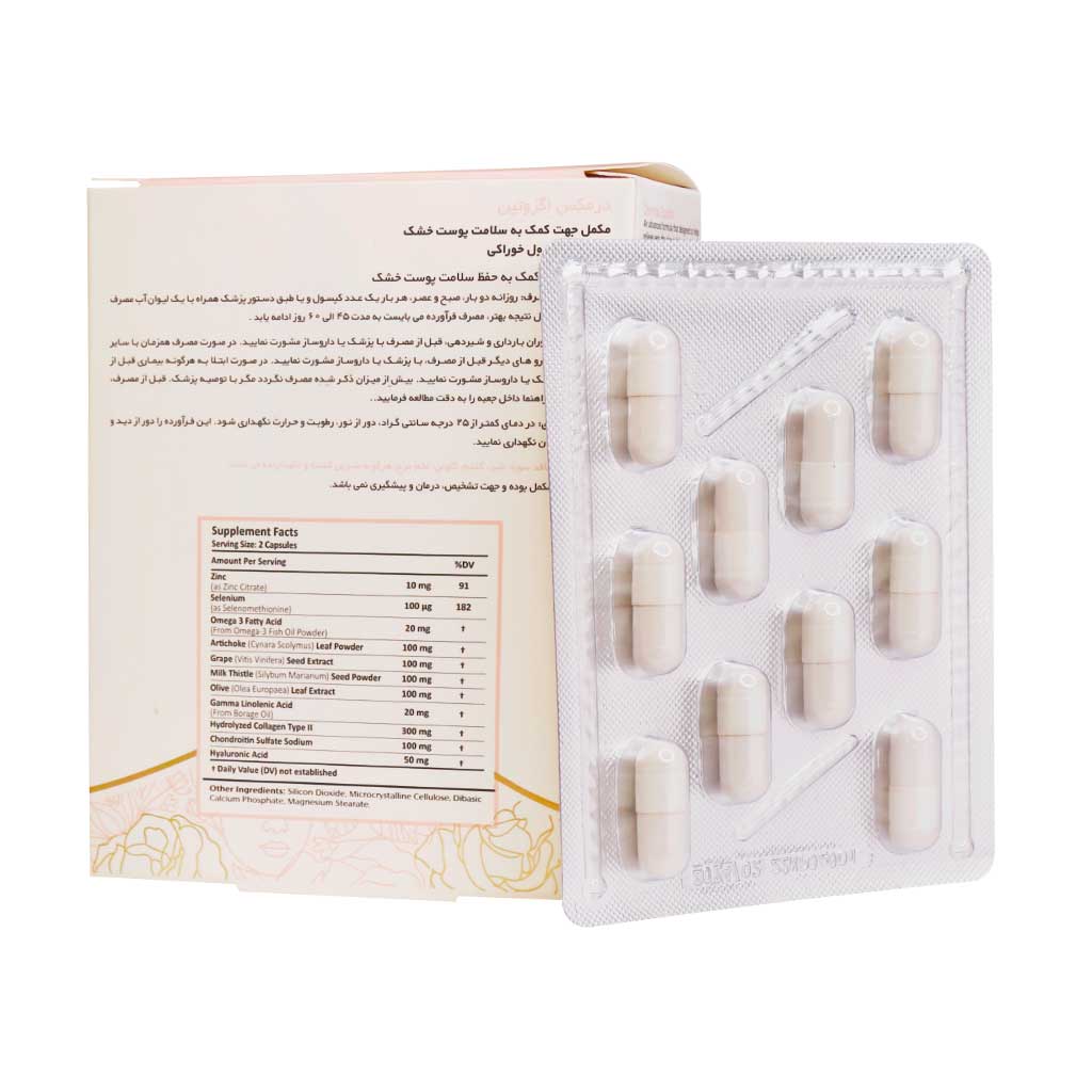خشکی و کم آبی پوست از جمله رایجترین مشکلات پوستی است که اگر اقدام به هنگامی نداشته باشیم، تبدیل به اگزما شده و پوست را در معرض پیری و چین و چروک قرار میدهد. کپسول اگزوتین درمکس بواسطه ترکیبات موثری از جمله هیالورونیک اسید، کلاژن خوراکی، روغن امگا3، عصارههای گیاهی و مواد معدنی که در خود دارد، نقش بسزایی در بهبود شرایط پوست و مو داشته و از بروز بیماریهای پوستی پیشگیری میکند.