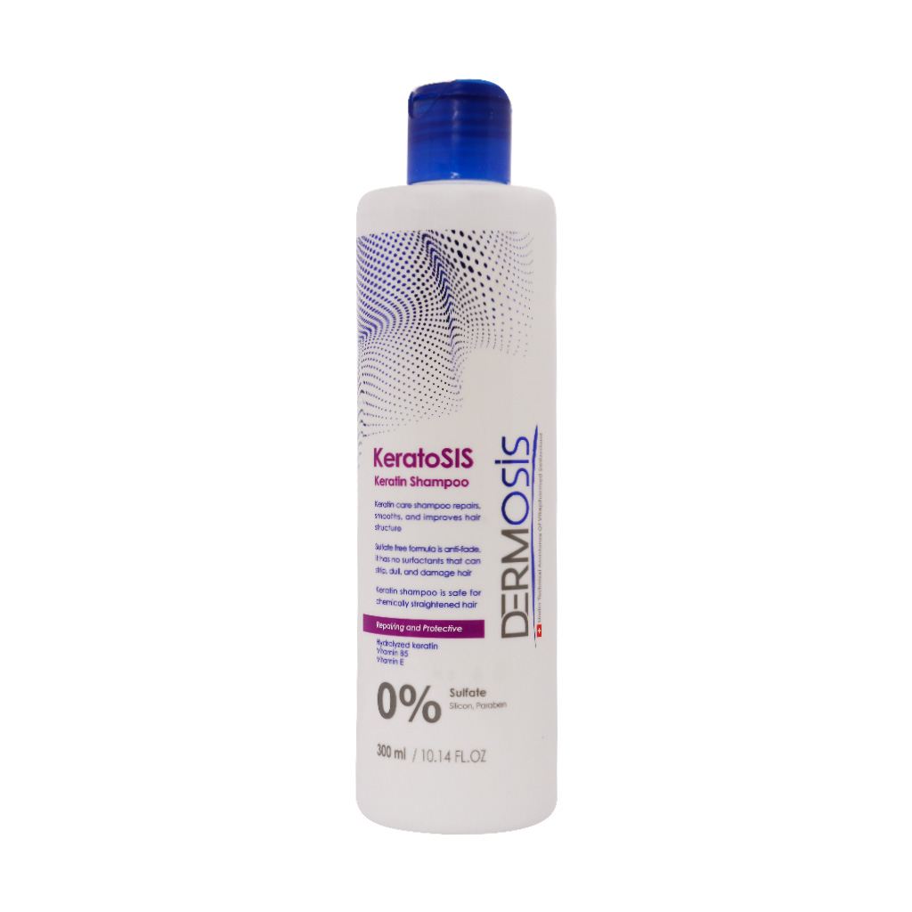 شامپو کراتین درموسیس مناسب موهای آسیب دیده فاقد سولفات و مواد مضر شیمیایی بوده و نواحی آسیب دیده ساقه مو را ترمیم میکند. این شامپو به تسکین کف سر پرداخته و حالت پذیری تارهای مو را افزایش میدهد.