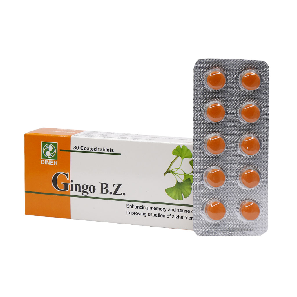 قرص روکش دار جینگو بی زد دینه از عصاره استاندارد برگ گیاه جینکوبیلوبا همراه با ویتامین B1 و زینک تهیه میشود که برای بهبود عملکرد مغزی، حافظه و حس جهت یابی مورد استفاده قرار میگیرد.