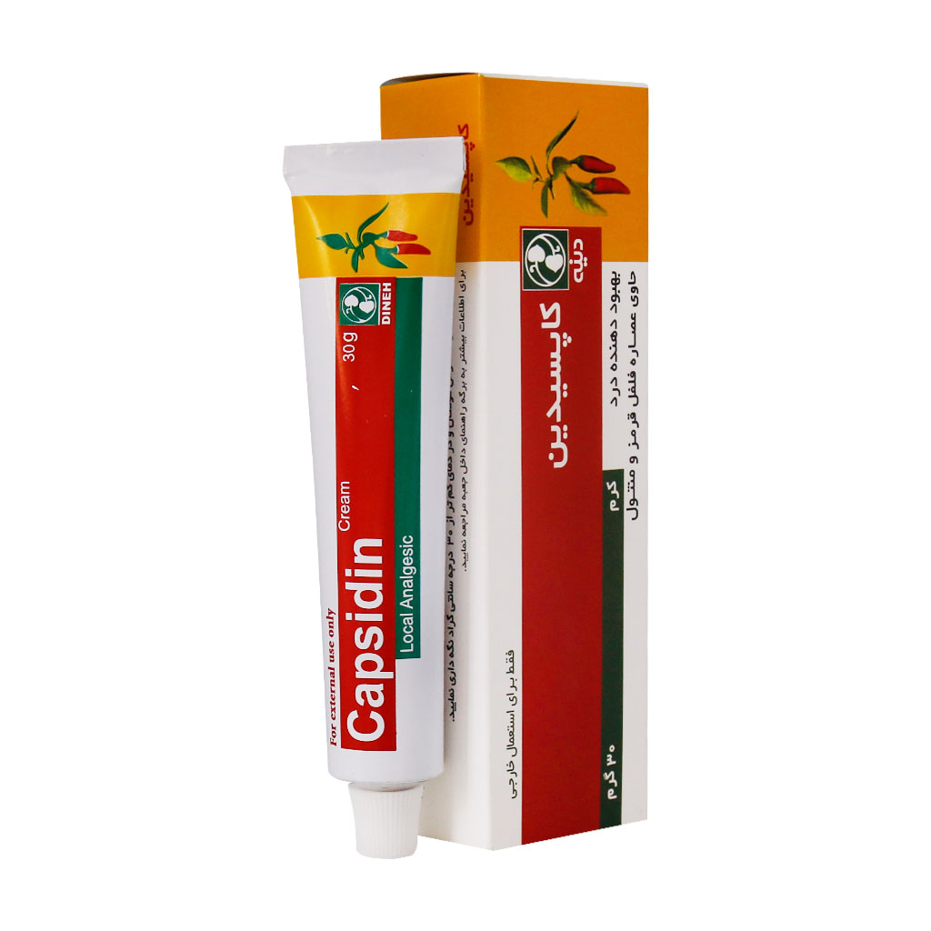 از کرم کاپسیدین بعنوان کمک درمانی مناسبی در تسکین دردهای روماتیسمی، درد شانه، بازو، دست ها، زانوها، و سایر مفاصل و نیز در کشیدگی تاندون ها و در رفتگی ها می توان استفاده کرد. به دلیل فرمولاسیون ویژه و فرم کرم (به جای پماد) علاوه بر آنکه میزان جذب مواد موثره و اثر ضد درد بالایی دارند، پس از مالش کاملا جذب شده و از چرب شدن لباس جلوگیری می گردد. استفاده مکرر از کرم کاپسیدین دینه، علاوه بر آنکه باعث کاهش قرمزی و حساسیت پوست به آن می گردد، درد در موضع را مهار می کند. این کرم فاقد هر گونه بوی نامطبوع بوده و کاربرد آن را راحت تر می کند.