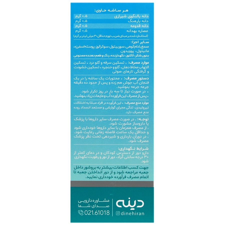 ساشه گرانول تارادین دینه با درمان درد گلو و التهاب مخاط دهان و گلو، باعث تسکین سرفه و نرم شدن سینه شده و گرفتگی صدا را برطرف مینماید. خوشبختانه این محصول بدون شکر است و برای افراد دیابتیک نیز قابلیت استفاده دارد.