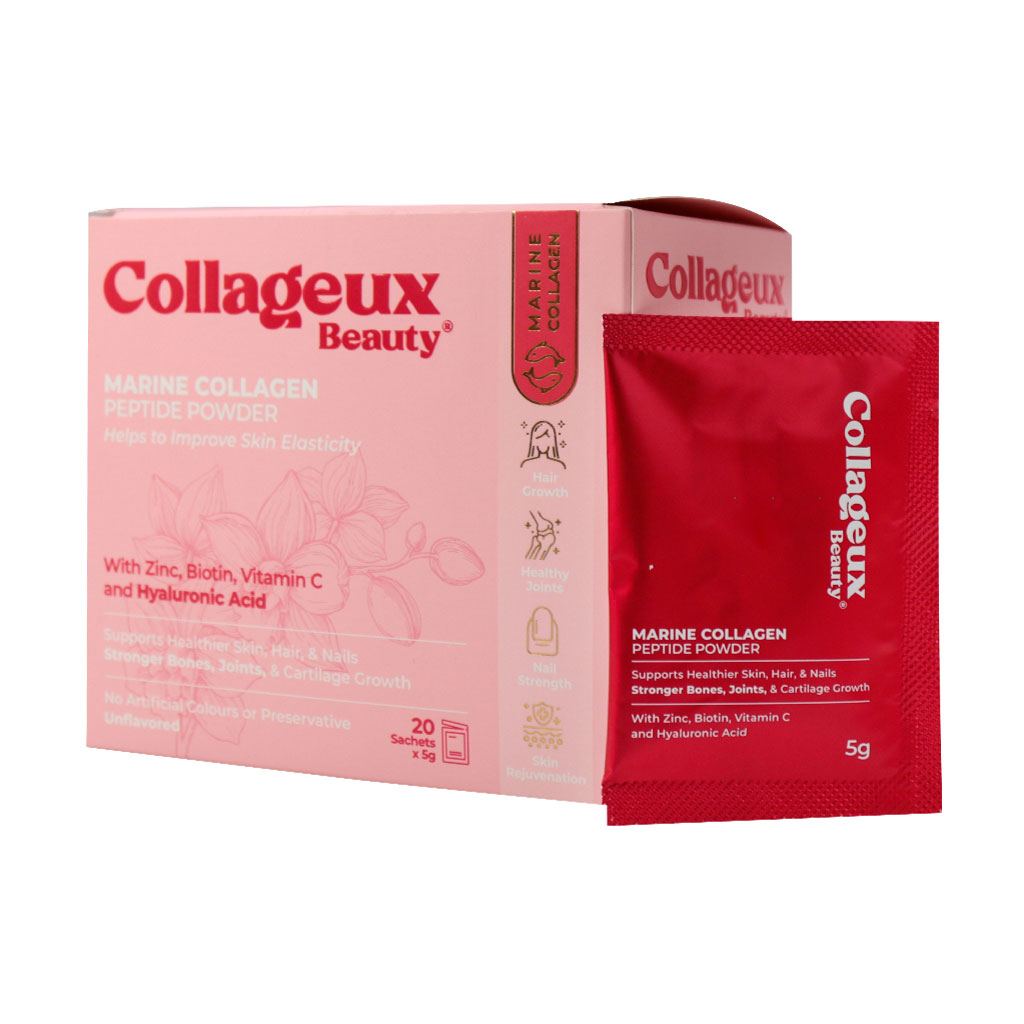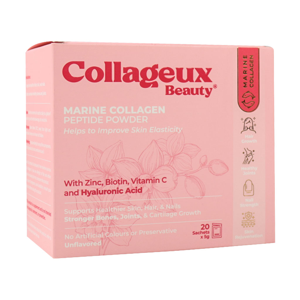 ساشه کلاژوکس بیوتی دنیا دارو سپهر حاوی پپتید کلاژن با منشا دریایی، زینک، ویتامین C و هیالورونیک اسید بوده که با افزایش استحکام پوست و حفظ حالت کشسانی آن از افتادگی پوست جلوگیری کرده و به جوانسازی آن کمک میکند. این محصول از چین و چروکهای پوست جلوگیری کرده و ظاهری شاداب و باطراوت را برای فرد به ارمغان میآورد. کلاژوکس بیوتی به حفظ سلامت استخوانها و افزایش استحکام ناخنها کمک میکند و نقش موثری در کاهش دردهای آرتروز دارد. همچنین قرص کلاژن در حفظ سلامت عروق نقش دارد و از این طریق در بهبود سلامت قلب اثرگذار است. مکمل کلاژوکس بیوتی ساخت ایران است و در بستههای 20 عددی در داروخانه آنلاین مثبت سبز با قیمت مناسب موجود است.