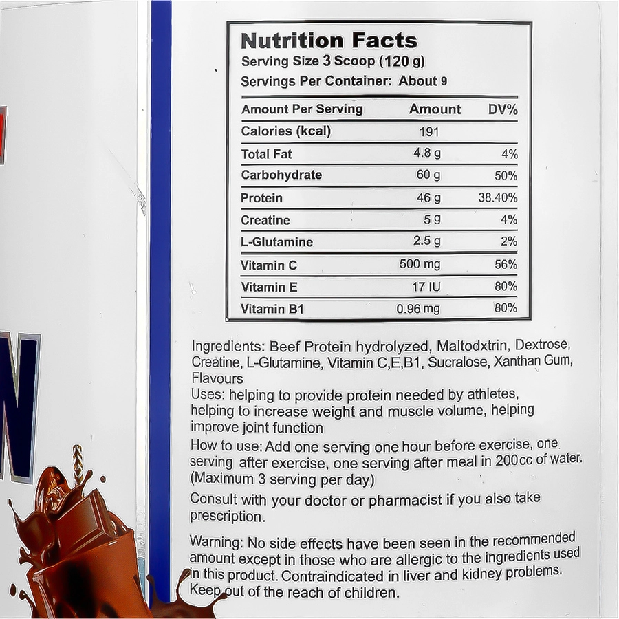 - حاوی پروتئین گوشت گاو خالص به همراه کراتین و ال گلوتامین
