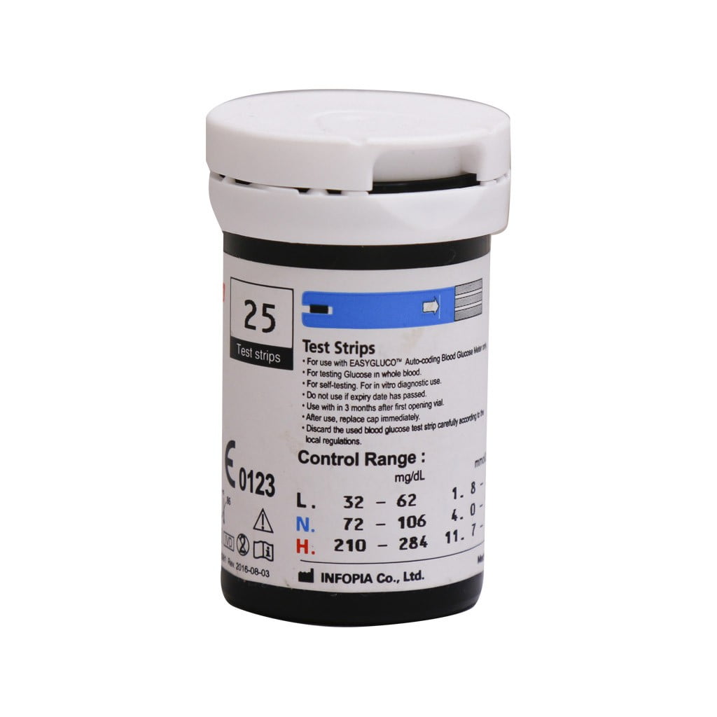 نوار تست قند خون ایزی گلوکو مورد استفاده در تست قند خون EasyGluco برای اندازه گیری قند خون تنها به ۱٫۵ میکرولیتر خون نیاز دارد و در زمان ۹ ثانیه مقدار قند خون را نمایش میدهد که میتوانید با تنظیم شناسه اختصاصی، آزمایش قند خون خود را انجام دهید. در این تست نیازی به وارد کردن دستی کد نوار نبوده و شناسایی نوار تست به صورت تمام اتوماتیک توسط خود دستگاه انجام میشود. به وسیله این دستگاه قند خون میتوانید ثبت وضعیت غذا و دارو در زمان آزمایش را مشخص نمایید. این محصول با بسته بندی غیر قابل نفوذ و ضد ضربه، دارای قابلیت جابهجایی و استفاده بسیار راحت از دستگاه را امکان پذیر کرده است. پس از قرار دادن نوار داخل دستگاه به یک قطره خون معادل ۱٫۵ میکرو لیتر نیاز است. برای اندازهگیری تست لازم نیست که خون روی شیار نوار قرار بگیرد و کافی است انگشت به نوار چسبانده شود تا خون روی آن به داخل شیار کشیده شود. تاریخ مصرف این نوار ۳ ماه پس از باز شدن درب پلمب شده بسته بندی نوار تست قند خون است.