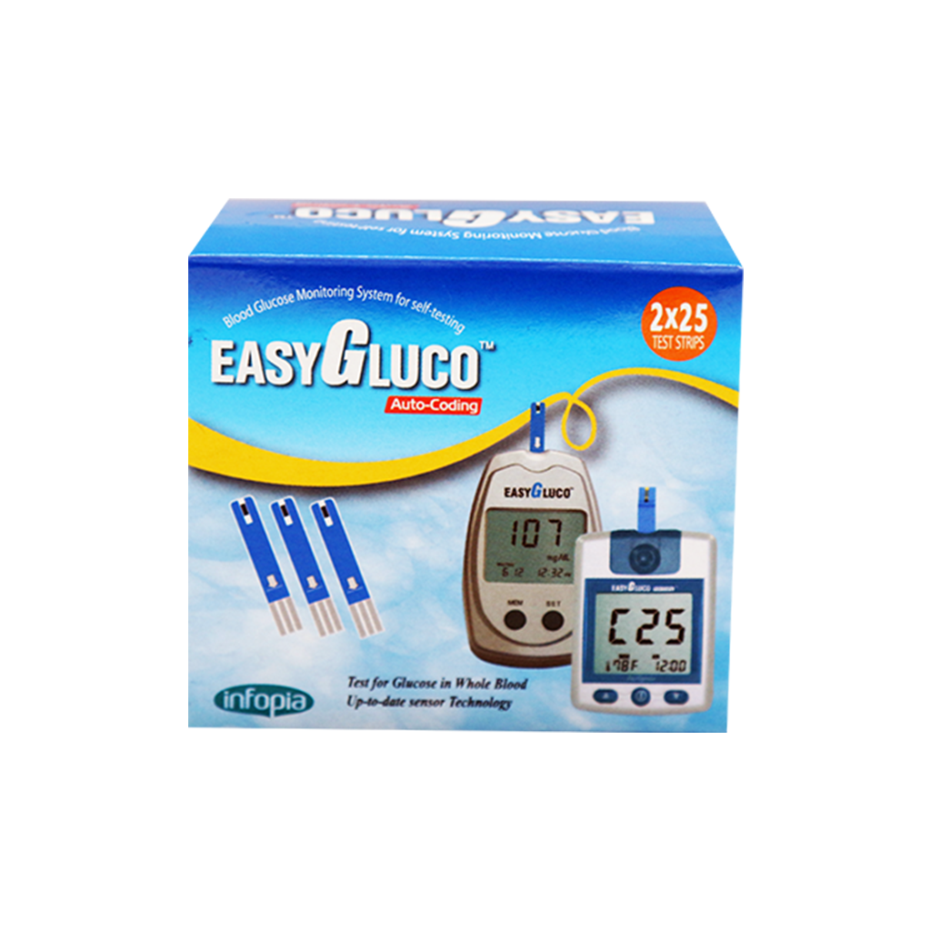 نوار تست قند خون ایزی گلوکو محصولی از کشور کره است که در پکیج 50 عددی در دو قوطی درب دار 25 تایی ارایه شده است تا در برابر رطوبت، دما و آلودگی های احتمالی محیط محافظت گردد. دمای مناسب برای نگهداری از این محصول 2-30 درجه سانتی گراد و در جای خشک و خنک می باشد. این نوارها قابلیت کدگذاری خودکار داشته و نیازی به وارد کردن دستی کد بسته نوار نمی باشد. میزان خون لازم برای عملکرد نوارها حدود 1.5 میکرولیتر است و در زمانی کوتاه حدود 9 ثانیه نتیجه را نمایش می دهد. هر نوار برای یکبار تست قند خون و برای استفاده شخصی کاربرد دارد، در ضمن برای داشتن نتیجه دقیق نباید نوار تست قند خون را خم یا تا کنید.