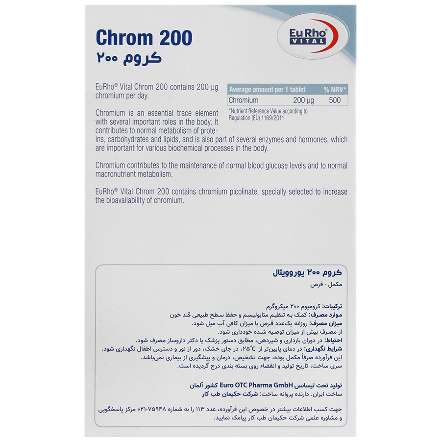 ویژگی های قرص کروم 200 میکروگرم یوروویتال