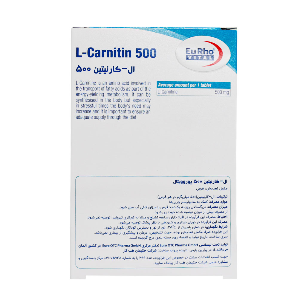 قرص ال کارنیتین 500 میلی گرم یوروویتال 60 عددی