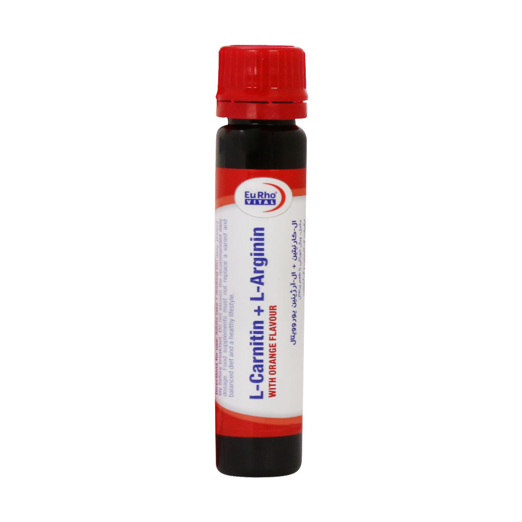 ویال ال کارنیتین و ال آرژنین یورویتال حاوی 1000 میلی گرم از دو اسید آمینه ال کارنیتین و ال آرژنین بوده که به متابولیسم چربیها، افزایش انرژی بدن، افزایش قوای جنسی و عضله سازی کمک موثری میکند. خرید ال کارنیتین و مصرف آن به تنهایی در چربی سوزی و لاغری نقش دارد ولی میتوان گفت مصرف همزمان ال کارنیتین و ال آرژنین با یکدیگر بیش از هر چیز در چربی سوزی و لاغری موثر است.