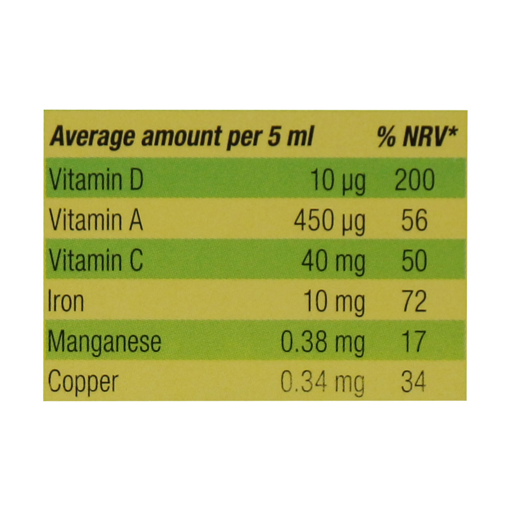 کودکان 1تا3 سال یک قاشق چای خوری (2.5 میلی لیتر) یکبار در روز