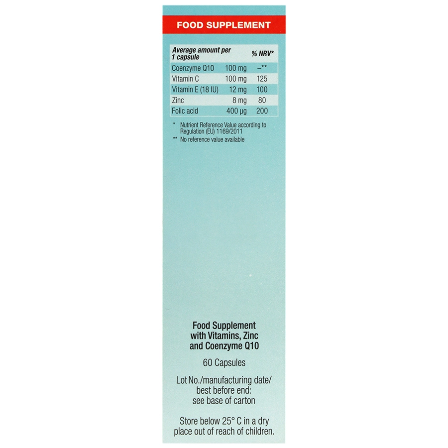 - حاوی کوآنزیم کیوتن، زینک، فولیک اسید و ویتامینهای C و E