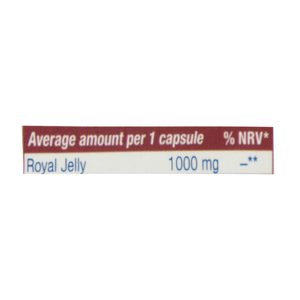 ژل رویال، ژلاتین گاوی، روغن آفتابگردان، گلیسرول، لسیتین سویا، سوربیتول، موم زنبور عسل، رنگ زرد، تیتانیوم دی اکساید، آیرون اکساید و هیدروکساید و دی ال آلفا توکوفریل استات