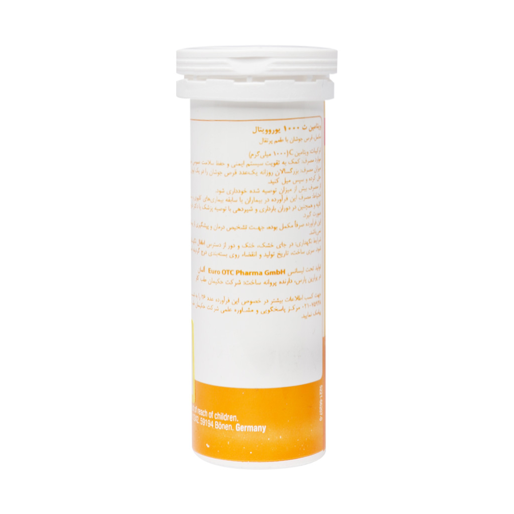 قرص جوشان ویتامین C 1000 میلی گرم یوروویتال صرفا مکمل بوده و جهت تشخیص، درمان و پیشگیری از بیماری نیست.