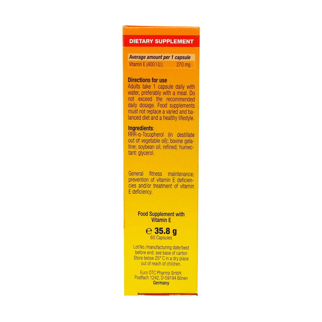کپسول ویتامین E 400 واحد یوروویتال تهیه شده از روغن‌های گیاهی و کاملا طبیعی است و به همین دلیل دارای بالاترین جذب خوراکی است. کمبود ویتامین E در افرادی که دارای مشکلات گوارشی و یا فیبروکیستیک هستند یا رژیم غذایی خیلی کم چربی دارند، رخ می‌دهد.