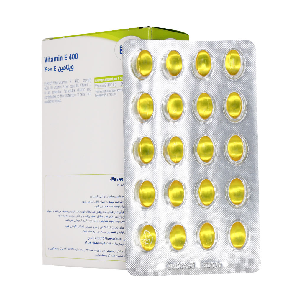 کپسول ژلاتینی ویتامین E 400 واحد یوروویتال خاصیت آنتی اکسیدانی داشته و ضمن تامین ویتامین E مورد نیاز بدن، اثرات مخرب رادیکالهای آزاد را از بین میبرد.