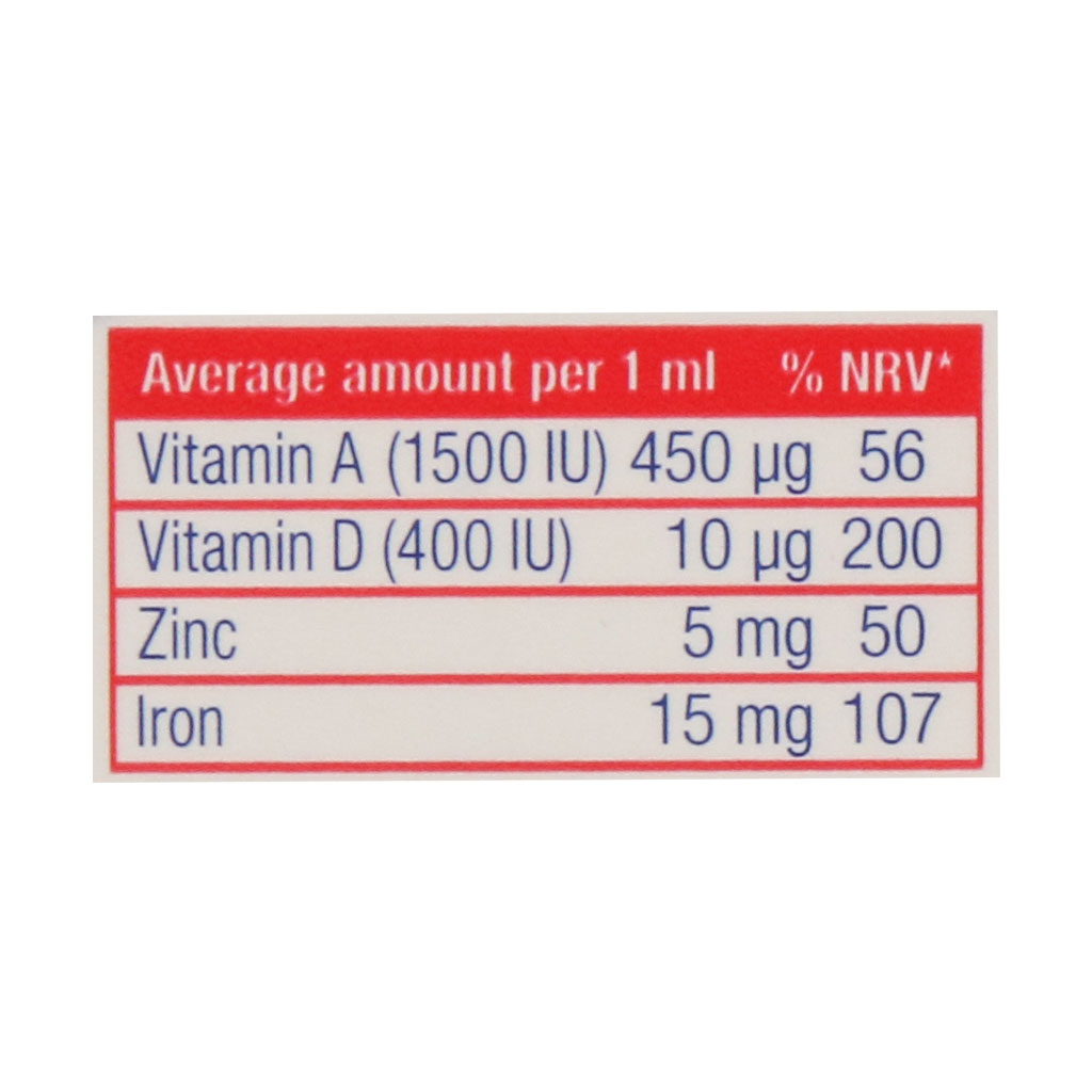 - حاوی روی، آهن لیپوزومال، ویتامینهای A و D3
