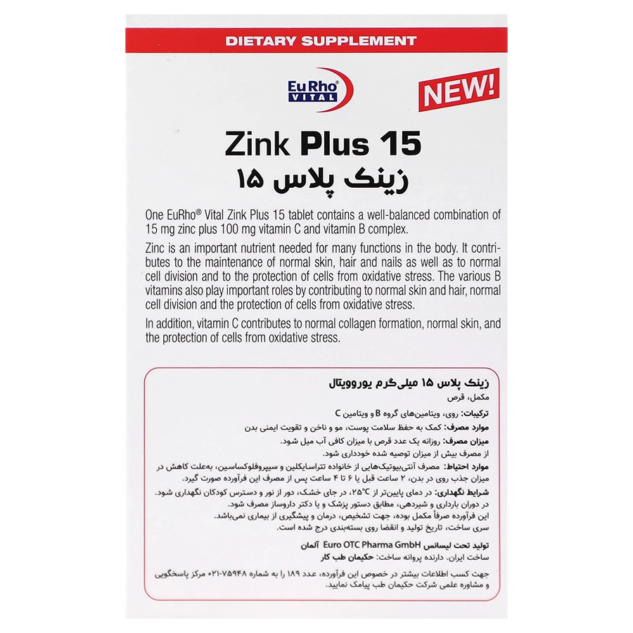 - حاوی زینک 15 میلی گرم