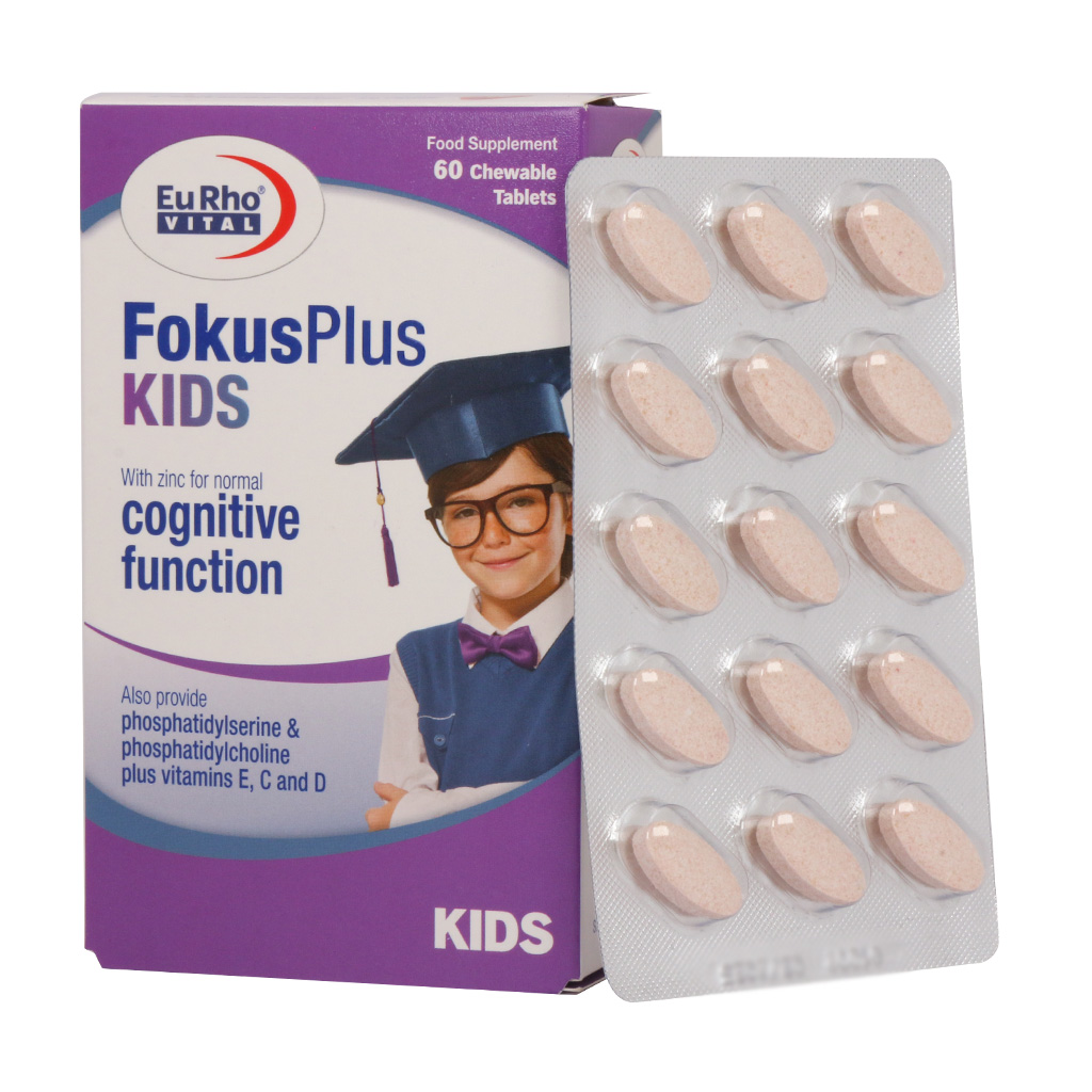 قرص جویدنی فوکوس پلاس کیدز یوروویتال تامین کننده روی، ویتامین‌های B12، C، D3، E به علاوه فسفاتیدیل کولین و فسفاتیدیل سرین در یک ترکیب و فرمولاسیون خاص است. روی یکی از مواد معدنی مهم است که در بسیاری از واکنش‌های بدن نقش دارد. از جمله اثرات این ماده معدنی حفظ عملکرد طبیعی سیستم عصبی و روان شناختی افراد است. این عنصر همچنین با خواص آنتی اکسیدانی از سلول‌های عصبی در برابر آسیب محافظت می‌کند. دو ترکیب دیگری که شاید اسمشان کمتر به گوشتان خورده باشد شامل فسفاتیدیل کولین و فسفاتیدیل سرین است. ترکیب اول فسفولیپیدی است که به کولین متصل می‌شود. این ترکیب به صورت طبیعی در غشای سلول‌ها و برخی از مواد غذایی وجود دارد.
