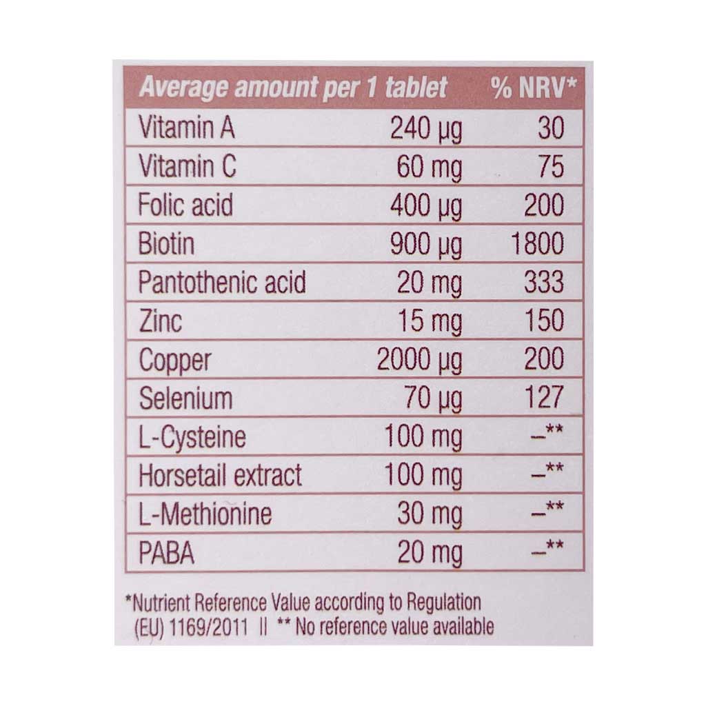 عصاره گیاه دم اسب به کار رفته در این قرص سرشار از سیلیکا است. این ترکیب باعث بهبود رشد موها شده و برای تولید کراتین سولفات مورد نیاز است. عصاره این گیاه گردش خون در پوست سر را افزایش داده و باعث تقویت رشد موها میشود.