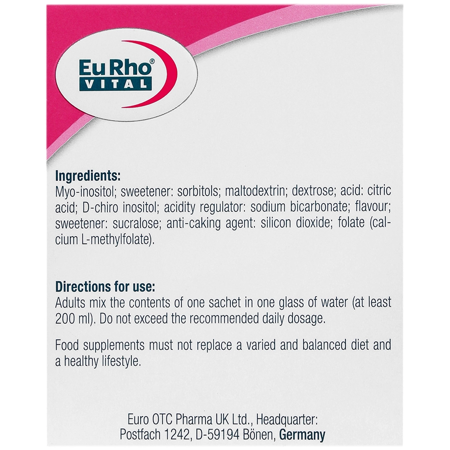 هر ساشه از این فراورده حاوی 2000 میلیگرم مایو اینوزیتول، 50 میلی گرم دی کایرو اینوزیتول و 400 میلیگرم فولات میباشد.