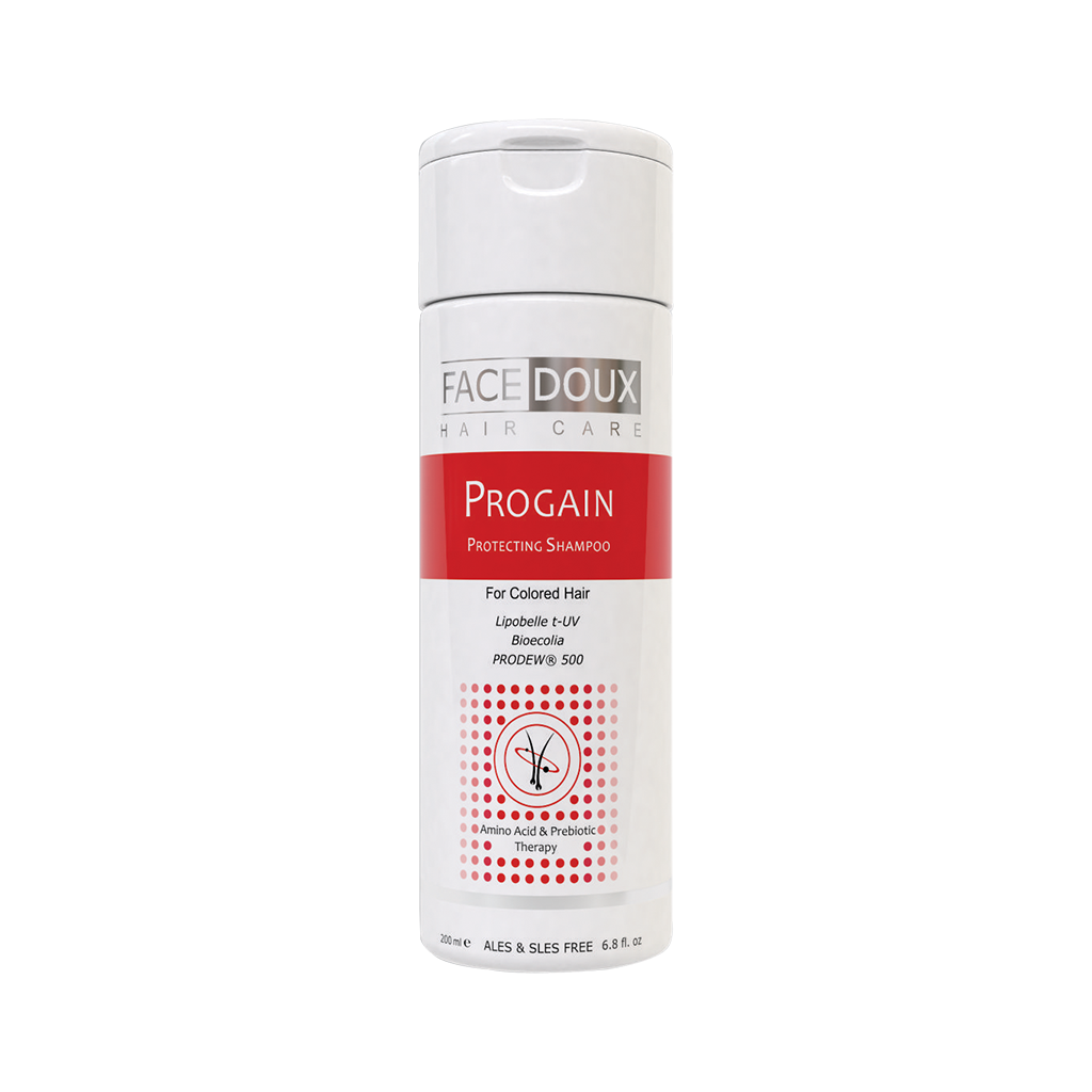 وقتی مو را رنگ می کنیم شکننده و زبر می شود مخصوصا وقتی موی مشکی را به موی طلایی تغییر رنگ می دهیم از مواد مضری برای مو استفاده می شود که بسیار به مو آسیب وارد می کند چون سطح رنگ ها با هم بسیار فرق دارند و آرایشگر مجبور است با مواد مضری رنگ موی تیره را به روشن تبدیل کند و همچنین باید این مواد زیاد بر روی مو بماند که در این مدت آسیب زیادی وارد مو می شود. شامپو پروگین فیس دوکس محافظ موهای رنگ شده است که موجب نرمی، درخشندگی و محافظت از رنگ موهای رنگ شده همراه با افزایش میزان رطوبت مو می گردد. همچنین این شامپو تثبیت کننده رنگ مو به ترمیم تارهای آسیب دیده مو می پردازد و باعث تثبیت رنگ بر روی مو نیز می شود.